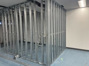 ↓軽量鉄骨でボードを張るための柱を作った写真です